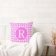pink round frame monogrammed houndstooth patterned square throw pillow