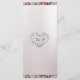 Heart monogram, ribbon & glitter embellish this wedding menu, the back also has a monogram placeholder. Available with different colours for your wedding theme. (Ribbon & glitter are simulated in the artwork). Designed to coordinate with the Romantic Hearts, Ribbon & Sparkle on Pearl Wedding Collection. To change details, click «Personalise». To move the text or change the text size, font, or colour click «Click to customise further»