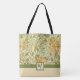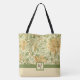 A floral tote bag with a moss green ribbon and square to add your monogram. A floral pattern by the English artist William Morris (1834-1896), called Honeysuckle (c. 1885), an intricately detailed wild honeysuckle vine of orange flowers and lush green foliage.