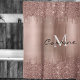 Monogram Rose Gold Dbl Dripping Glitter Metallic Shower Curtain