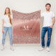 Metallic Rose Gold Dripping Glitter faux foil print on both the top and bottom, with a custom Monogram centered on this plush and cozy blanket