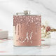 Monogram Rose Gold Glitter Drips Girly Sparkle Hip Flask