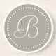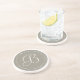 Coaster with a round aluminium grey monogram border with a white dot accent. Personalise with your monogram using the easy template. Font colour, font style, and font size are customisable. The perfect way to protect furniture.