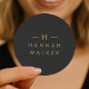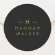 A simple, stylish custom monogram round sticker label featuring elegant gold minimalist typography on a sleek off black background. This refined design can be easily personalised with your initials, name, and optional feature line for a unique, one-of-a-kind look. Perfect as a wedding sticker, everyday gift seal, or elegant envelope seal, this versatile template adds a touch of sophistication to any occasion. Ideal for weddings, small businesses, stationery, or personal correspondence, this minimalist design combines timeless style with modern charm. A beautifully simple way to elevate packaging, favours, or invitations with effortless elegance.