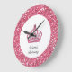 Pretty printed pink gemstone bling wall clock with monogram space you can add any name as princess, along with simulated pink rhinestone crown jewel and faux glitter on the clock face in this decorative wall decor design for your kitchen, dining room, dorm room. Decorate any room in your house you want to add some colour, fun and character. Designed for ladies or teenage girls who like to make a glitzy splash with their decor or royal followers waiting on the new royal baby to be born.