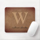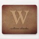 Monogram rustic brown leather ( close-up skin ) gold script name Mouse Pad, you can customise further if you wish. professional business, office & school supplies, or just simple manly stylish minimalist (holiday, birthday, Christmas, or every day) gift for him
