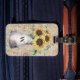 Introducing our Monogram Rustic Sunflower Vintage Letter Decoupage Luggage Tag! Featuring watercolor illustration of Yellow sunflowers in a jug. Personalise it for a unique touch on your journeys.