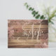 Rustic wood and rose colour lace wedding RSVP response card is the perfect touch for your country-style woodsy theme event. Customise the information with your personal info, including changing one fancy script for another. Check our shop for matching wedding invitation, save the date, and thank you cards - matching envelope available, too!