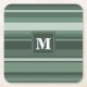 Monogram sage green stripes square paper coaster
