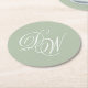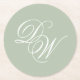 Monogram Sage Green Wedding Simple Elegant Script Round Paper Coaster