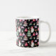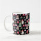 Add your Monogram or Initials to this Santa Gnome for Christmas Pattern Black Coffee Mug. A blue background pattern with gnomes, presents, holly, candy canes, Christmas trees, and Santa's bag. Personalise this with your initials. Edit it for more customisation.