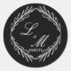 Monogram Script Branch Black White Wedding Classic Round Sticker