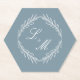 Monogram Script Branch Dusty Blue Wedding Paper Coaster
