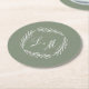 Monogram Script Branch Sage Green Wedding Round Paper Coaster