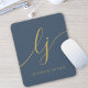 Monogram Script Elegant Feminine Navy Blue Gold Monogrammed Custom Mouse Pad