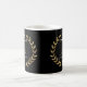 "Monogram Script Letter J Black n Gold Name Coffee Mug." Elegant and sophisticated gold leaf wreath with your monogram, alphabet, letter J in gold glitter. Personalise your name in script handwriting. Art by Internationally licensed artist, Audrey Jeanne Roberts, copyright.