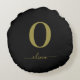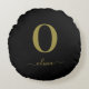Monogram Script Name Personalised Black And Gold Round Cushion
