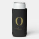 Monogram Script Name Personalised Black And Gold Seltzer Can Cooler
