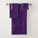 Monogram Script Name Personalised Purple And Gold Bath Towel Set