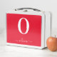 Monogram Script Name Personalised Red And White Metal Lunch Box