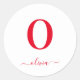 Monogram Script Name Personalised White And Red Classic Round Sticker