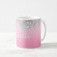 Monogram Script Name Pink Glitter Girly Glam Bling Coffee Mug
