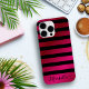 Create a unique personalised phone case with a pink and black striped pattern. Pink stripes imitate metallic surface. Text template makes it easy to customise the phone case with your name.