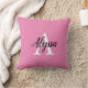 Monogram Script Stylish Pink Throw Pillow featuring an elegant arrangement of name and monogram initial on a pretty pink background. The pillow is easy to personalise by typing the name and initial of your choice into the online personalisation template before ordering. The text automatically copies across to the other side of the pillow to show the identical name and initial on each side. A lovely throw pillow for a sweet birthday gift or bridal shower favour.