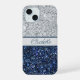 Monogram Silver Dark Blue Glitter Trendy Chic iPhone 15 Case