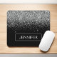 Silver and Black Faux Glitter Sparkle Elegant and Modern Chic Trendy Luxury Monogrammed Mouse Pad. These monogram - add your own name customised mousepad can be updated with your name.