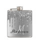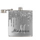 Monogram Silver Glitter Drips Girly Sparkle Hip Flask