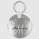 Monogram Silver Glitter Drips Sparkle Key Ring