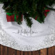 This gorgeous Christmas tree skirt features white brushed metal background with sparkling silver glitter borders. Add your family name and initial for a personal touch.