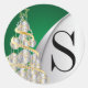 Monogram Silver, Gold and Green Merry Christmas Classic Round Sticker
