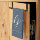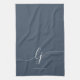 Monogram Neutral Simple Elegant Calligraphy Dusty Navy Blue Gold Script kitchen towel