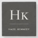Monogram Simple Elegant Minimalist Monogrammed Initials Name Black White Stone Coaster