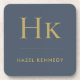 Monogram Simple Elegant Minimalist Chic Monogrammed Navy Blue Gold beverage coaster