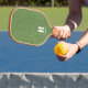 This stylish pickleball paddle features a classic olive green denim print background with white typography name and initial on both sides. A solid black denim print covers the back. Choose white, tan (shown) or black. Easily change name and initial to make it yours using the Template provided. See "About This Product" at side for information and specifications. You can choose to have the USA Pickleball certification printed on the paddle.