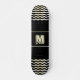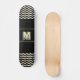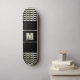 This personalizable skateboard comes with a monogram and abstract digital waves on each side. The font, size and the colour of the monogram can be changed. The background is black but you can change it too.