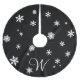 This tree skirt is accented with your family monogram on a basic black background covered in snowflakes.
