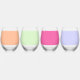 Enjoy your refreshing drinks with this pretty set of elegant stemless wine glasses. In the set of four, there is one glass of each colour; peach, green, pink and lilac. Each glass can be personalised with an initial to form a monogram in the centre of the design. The set would make an attractive addition to a garden party,