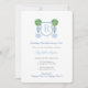 This preppy bridal shower invitation design features a simple monogram crest flanked on either side by a handpainted topiary ball in a ginger jar planter adorned with floppy bow. Watercolor elements were painted by me onto 100% cotton paper and scanned into digital form. The crest shape is by another artist.