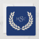 Square shaped card with Basic Monogrammed three letters initials. Excellent for any male or female graduate. This contemporary royal blue, black and neutral beige graduation announcement / graduation ceremony invitation is nice for college, level graduates. Classic design with stately laurel wreath, personalised monogram, and elegant fonts. Great option in place of official school announcements. Formal to traditional and classic graduation invite suitable to men or women.