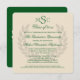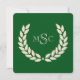 Square shaped card with Basic Monogrammed three letters initials. Excellent for any male or female graduate. This contemporary kelly green, black and neutral beige graduation announcement / graduation ceremony invitation is nice for college, level graduates. Classic design with stately laurel wreath, personalized monogram, and elegant fonts. Great option in place of official school announcements. Formal to traditional and classic graduation invite suitable to men or women.