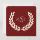 Square shaped card with Basic Monogrammed three letters initials. Excellent for any male or female graduate. This contemporary maroon dark burgundy red and neutral beige graduation announcement / graduation ceremony invitation is nice for college, level graduates. Classic design with stately laurel wreath, personalised monogram, and elegant fonts. Great option in place of official school announcements. Formal to traditional and classic graduation invite suitable to men or women.