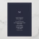 Dark blue background and grey text below an intricate square foil design with monogram centre and foil border.