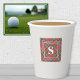 Royal Stewart Tartan plaid square print and double-framed white initial decorate this set of platinum background paper cups. Easily change the initial using the Template provided. Dimensions are 3.75"h x 3"d, The cup is 8oz capacity and ideal for cold and warm beverages. Add a lid for a small charge (I think it is worth getting lids). I take mine to convention, very nice quality. See "About This Product" at side for more information. Printed in USA.