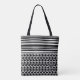 monogrammed black and white striped triangle dual patterned all over print tote bag