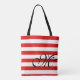 Monogram & Stripes Tote Bag- Red