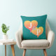 Romantic sunset shades of golden yellow orange to pink hues on double hearts with solid teal green background reversible Wedding Throw Pillow. Personalise hearts with couple's monogrammed initials. Back of pillow personalise with Bride and Groom's First Names and Wedding Date. Lovely wedding gift for the newlyweds! Original Artwork Design by TamiraZDesigns.